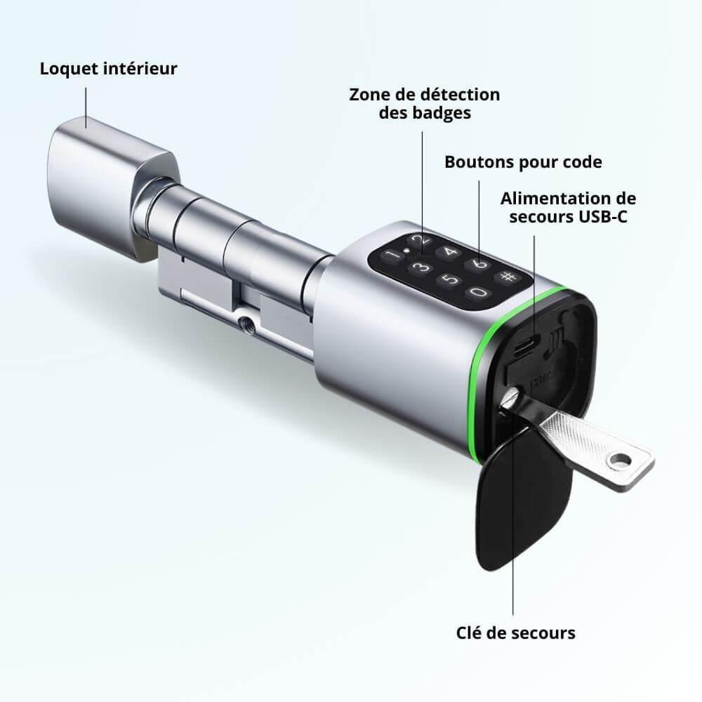 Cylindre électronique de serrure connecté LOCKY-10 BIO à empreinte digitale et badge RFID MIFARE